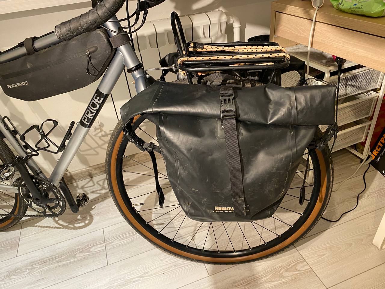 Рама сталь, вилка хромоль, размер Л (мой рост 181, сидит отлично), состояние хорошее, есть потёртости от сумок и царапки от пробега, пробег около 4000 км. Стоимость вела 65 000 руб (вместе с шикарным тупик багажником, подрамной непромокаемой сумкой и декатлоновскими педалями) +отдельно могу предложить за 4000 руб. 2 шт. непромокаемые сумки на багажник (есть небольшие потёртости). С этими сумками ваши вещи всегда останутся сухими (али). ++нарульная сумка-трансформер Blackpack. Сумку можно разместить на руле, можно сделать ее рюкзаком или поясной сумкой. Очень доволен, всегда выручает, быстрый доступ при размещении на руле - 3000 руб.