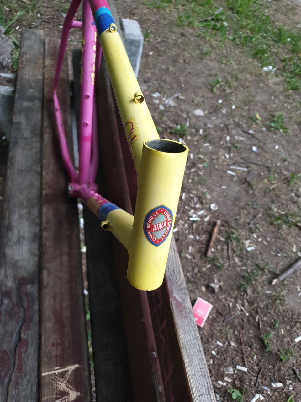 Итальянская рама конца восьмидесятых/начала девяностых от Atala, довольно симпатичная В комплекте только рама, вилки нет По недостаткам отмечу лишь то, что один из тормозов будет крепиться гайкой, а не винтом/болтом Цена 1500 при самовывозе, отправлю и упакую ещё за 500