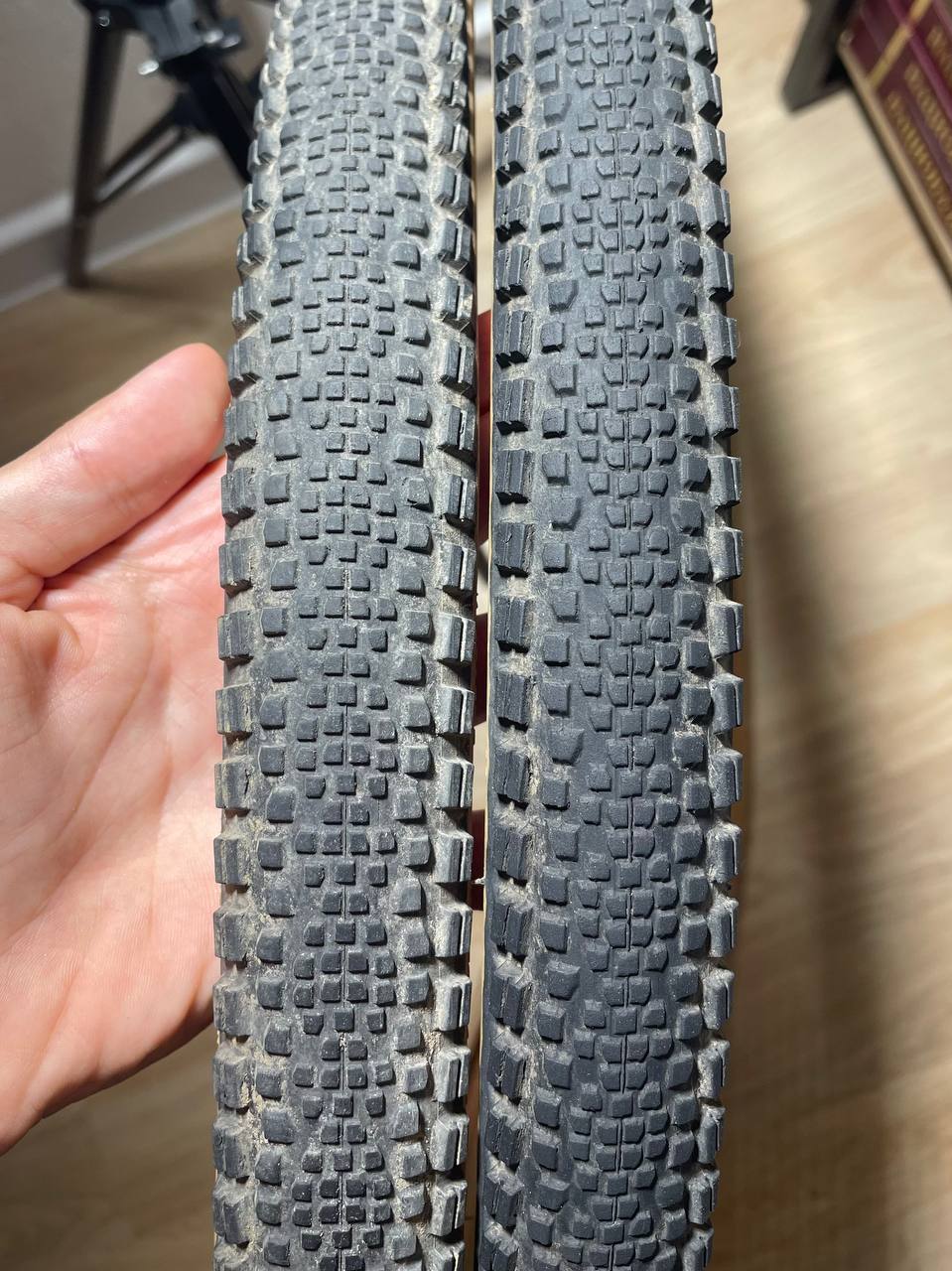 Покрышки гравийные 37мм х 700 с бежевым кордом, пробег ~ 700 км, одна чуть более чистая, поскольку не ездила последние километров 100, при покупке обе будут чистенькие Цена за пару