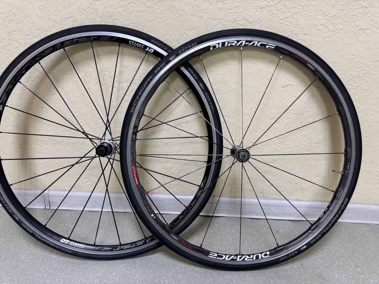Заднее колесе считайте новое пробег 1200-1500км переднее повидало видов. Вес Зад 1,231 перед 0,890 с резиной Установлены покрышки SCHWALBE ONE 700X23C ADDIX FOLD