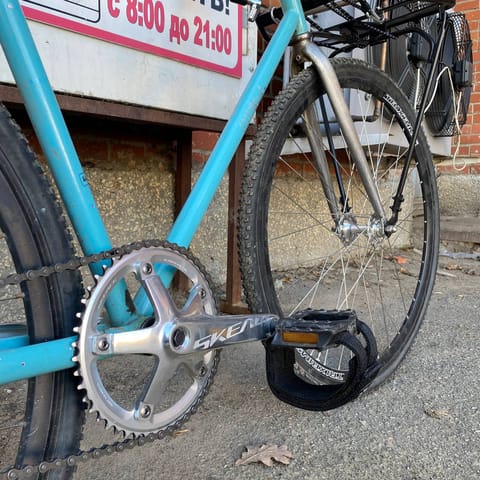 Продам глиномесную пиццевозку. Состояние боевое, но ухоженное. Коцки зачищены, обработаны нержавейкой и лаком. Внутри тоже обрабатывал нержавейкой. Одним словом - следили (по возможности). Размер рамы 55 (170-180см оптимально). Повозка собиралась для дорог из ховна, по ним и эксплуатировалась. Служил верой и правдой, скакун добротный. По компонентам: Руль: FUNN Full On 31.8 610mm Вынос: UNO Advanced Project 90mm 7’ под 31.8 Багажник: Ardently Подседел: UNO Advanced Project 27.2 400mm Система: SKEACE 48T 165mm под квадрат Каретка: Kenli (поставил слишком длинную, под моими 95кг скрипит) Педали: Wellgo + Стрепы Impetus Цепь: KMC S1 Обода: Trixrims 28’ Втулки: Novatec Резина: Maxxis All Terrane 700x33C В комментах указал что отдаю с ним вместе